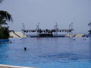 The backdrop to the stage was the edifice of the Costa Melonaros Hotel, and some of the fixtures lighting this were on the building's roof, over 250m across water from the lighting desk. Happily Essential's radio system worked perfectly, with very little lining up required.